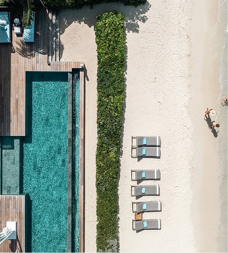 Dedicated lounge chairs at the beach or by the pool of the hotel